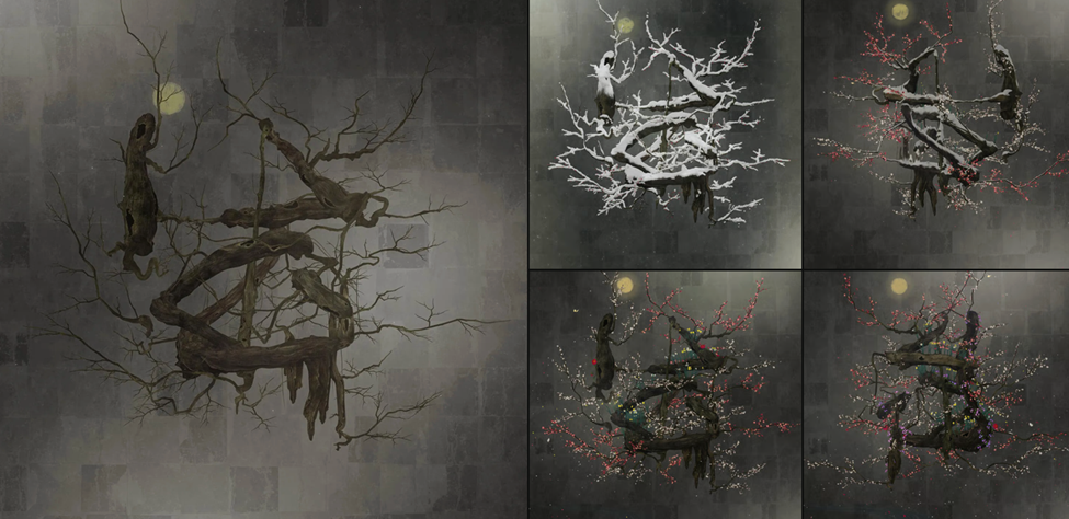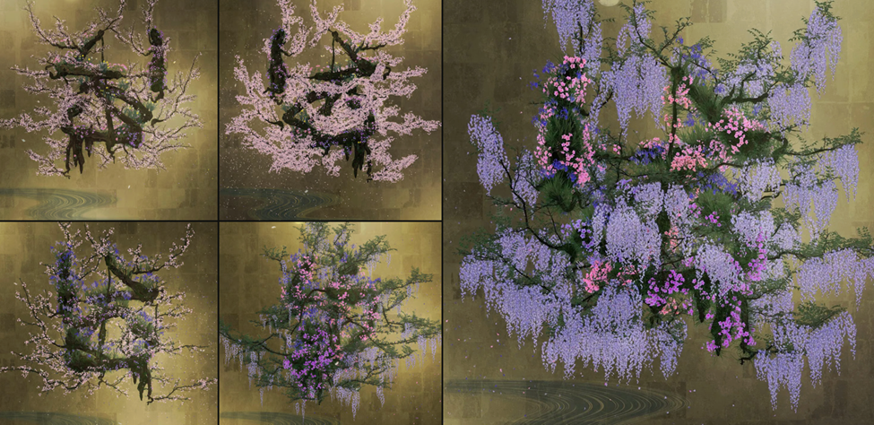 03 – Life Survives by the Power of Life II. The most amazing 3D calming work is placed at the restroom area. It depicts a full cycle of seasons – cherry blossoms, summer wildflowers, autumn chrysanthemums, winter stillness – unfolds within an hour. In this artwork, 生 (sei), the character that signifies life, is written three-dimensionally using Spatial Calligraphy. Spatial Calligraphy is a form of calligraphy drawn in space that teamLab has been exploring since it was founded. The artwork reconstructs calligraphy in three-dimensional branches to express the depth, speed and architectural mindfulness: stillness invites beauty. Calm presence generates bloom.